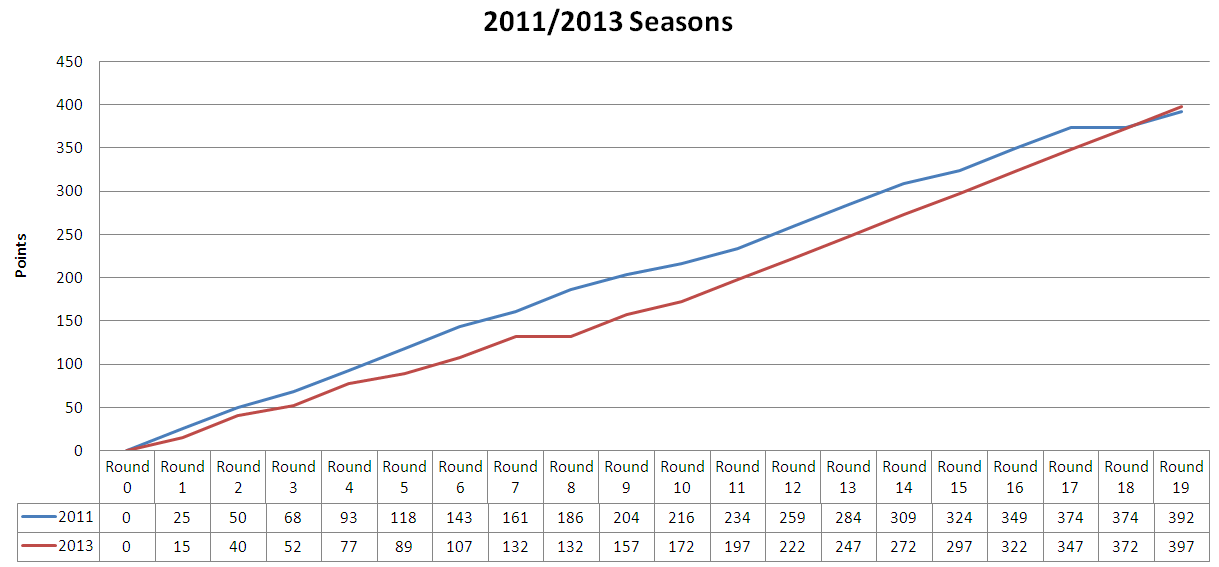 -Vettel’s point tally from 2013 (397) beat that Mercedes as a whole (360 and 2nd in the constructors).