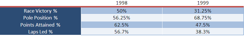 Both years saw Haikkinen at his best and the true potential of a well oiled and drilled McLaren team. The 1999 season was the more successful in terms of qualifying but the 1998 season was the better overall season. This can be put down to a better car advantage and also due to some great drives like the victory in Monaco and those three wins in the final three races to seal the title after a Schumacher mid-season resurgence. In comparison the 1999 had shades of the opposite. The six races of which Schumacher didn’t contest, due to a broken leg, Haikkinen only won once. Of course there were some mechanical issues preventing a more successful run but if the same scenario would’ve panned out in 1998, I doubt McLaren would have had that amount of problems and thus a more successful run. On the other side of the proverbial 1999 coin there were some great drives from Haikkinen as are documented above and a lack of luck should be pointed out as for a less successful season rather than a lack of motivation or skill.